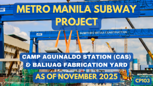 - Metro Manila Subway Project – MMSP-CP103 Progress Video as of November 2025📸: https://www.facebook.com/gersom.jose Our Official Links: #sumitomomitsuiconstructioncoltd#SMCC#MMSP#MMSPCP103#MetroManilaSubwayProject#MetroManilaSubwayProjectContractPackage103#CampAguinaldoStation#BaliuagYard